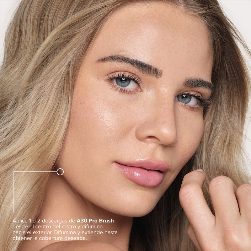Una base sedosa de cobertura media a completa que minimiza la apariencia de poros y líneas finas de expresión mientras unifica visiblemente el tono de la piel hasta por 12 horas. Está formulada con Ácido Hialurónico, Bixa Orellana y Fitoglucógeno que aumentan la hidratación en la piel, atenúan las imperfecciones y restauran la elasticidad. Gracias a la tecnología Precision Blur, su textura es suave y se desliza fácilmente, dejando un acabado mate aterciopelado con una sensación de segunda piel. No se apelmaza ni se derrite. Además, esta base alivia el enrojecimiento de la piel, dejándola tersa y saludable. Disponible en gran variedad de tonos, cada uno diseñado para combinar con diferentes looks. Es apta para todo tipo de piel, especialmente para pieles grasas.