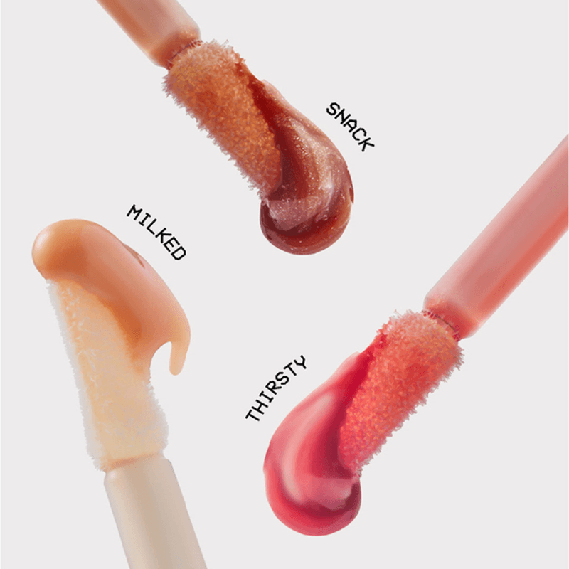 Un brillo con acabado luminoso que hidrata y suaviza los labios mientras aporta un color máximo con una sola pasada. Su fórmula tiene una mezcla de aceites y Vitamina E que ayudan a estimular la producción de colágeno, previenen la resequedad y disminuyen las arrugas de los labios. Además, este brillo deja los labios acondicionados y con un efecto de volumen ligero al instante de su aplicación. Viene en dos tonos, cada uno con un aroma frutal delicioso a sandía y diseñados para combinar con diferentes estilos.