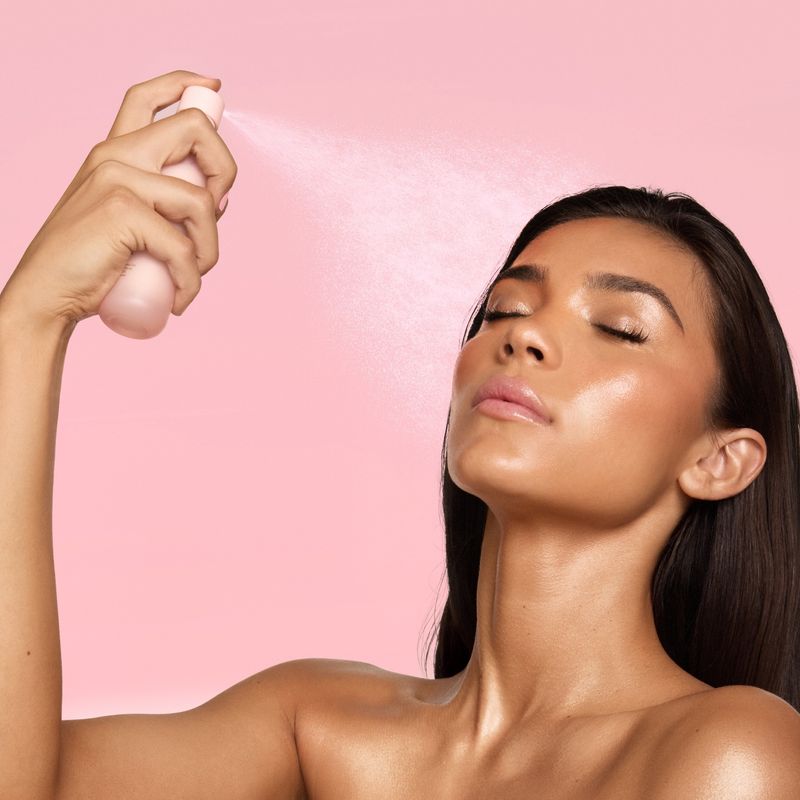 Una bruma hidratante con acabado glaseado. Esta bruma 3-en-1 prepara la piel con un extra de hidratación, fija el maquillaje con un efecto glaseado no pegajoso y refresca tu look durante todo el día con una esencia suave y calmante de Agua de Rosas.