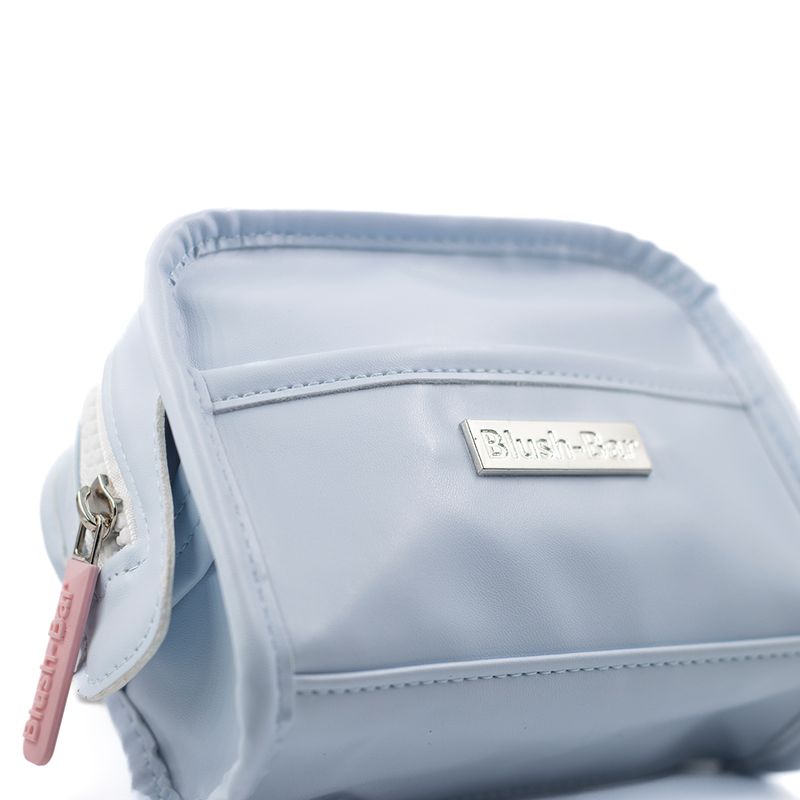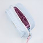 Una cosmetiquera pequeña ultra práctica para llevar tus productos esenciales siempre contigo! Esta cosmetiquera de color azul tiene un diseño moderno con cremallera blanca y nuestro logo Blush-Bar. Es perfecta para caber en tu cartera y ocupar poco espacio. Al interior tiene bolsillos estructurados para mejor organización. Le cabe una base pequeña, labial o bálsamo de labios, lápiz de ojos o cejas, encrespador de pestañas, máscara de pestañas, unas mini sombras y obviamente un blush! Llévala a todas partes y retoca tu maquillaje en cualquier momento.