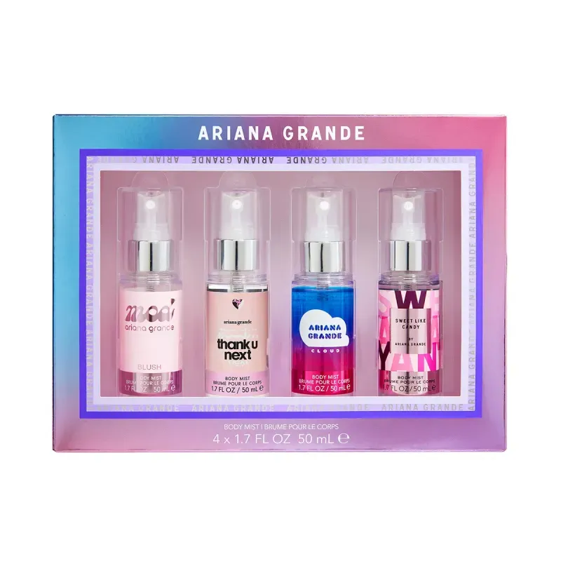 Un kit edición especial con 4 mini brumas perfumadas para mujer emblemáticas de Ariana Grande.