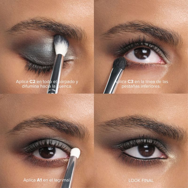Una paleta de sombras en tamaño mini con 9 tonos de alto pigmento desde neutros cálidos hasta tonos ricos y audaces en acabados mate y metálico.