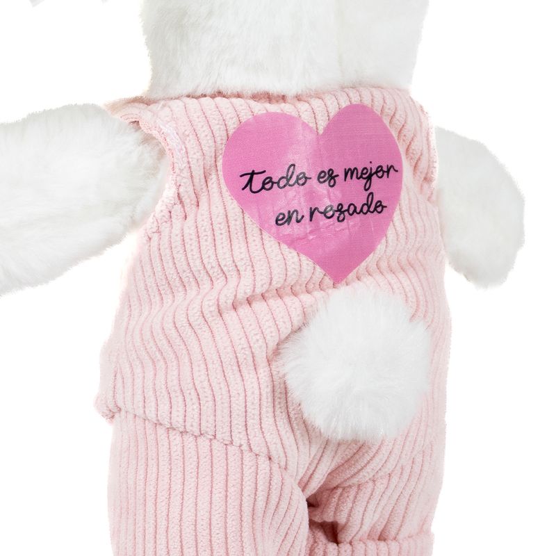 La Coneja Blush-Bar Edición #2! Llegó nuestra nueva Coneja Blush-Bar esta vez vestida muy fashionista con overoles de corduroy rosado. Recuerden que la Coneja Blush-Bar es nuestra mascota porque era la favorita de Claudia nuestra fundadora cuando era una niña! La Coneja se la dio su mamá cuando era pequeña y cuando hay veces le daba miedo o pena en el colegio. La coneja siempre recibe tus pedidos de online, los empaca y te avisa cuando ya van en camino hacia tu casa. Es un símbolo del espíritu luchador de nuestro equipo que trabaja día a día con amor y dedicación. Disfruta la segunda edición de la Coneja Blush-Bar con sus overoles rosados, estamos seguros que te hará buena compañía!