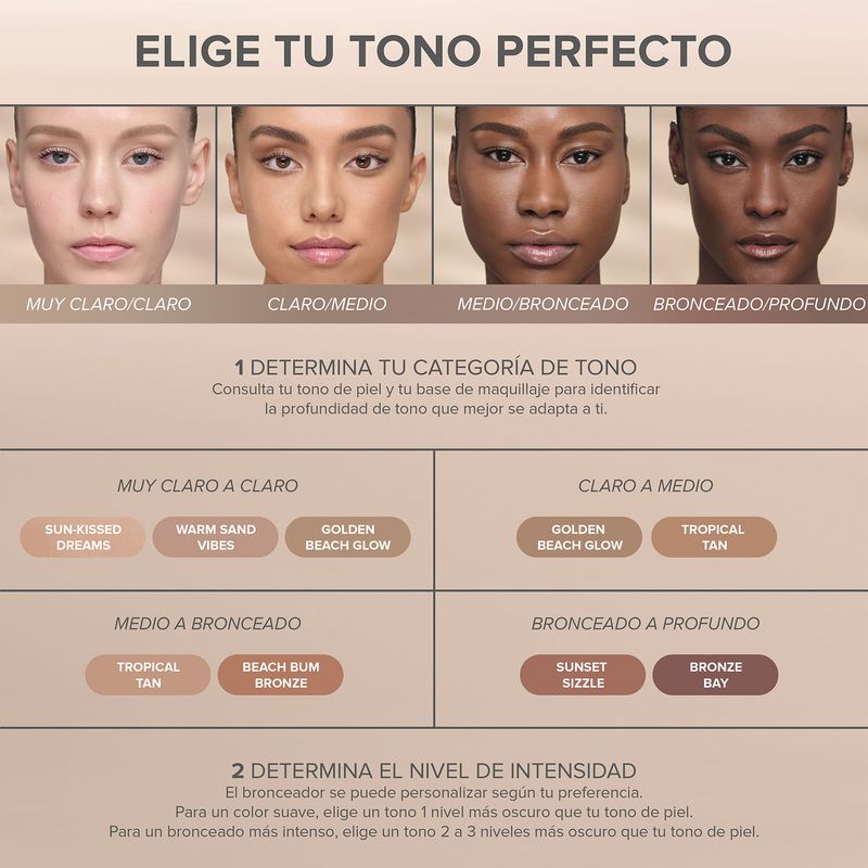 Un bronceador ultra suave y ligero que se funde con la piel para un acabado natural, uniforme y sutilmente bronceado. Su fórmula híbrida entre gel y polvo se difumina con facilidad y brinda un color mate de larga duración, ideal para añadir calidez al maquillaje. Disponible en siete tonos versátiles que se adaptan a todo tipo de piel.